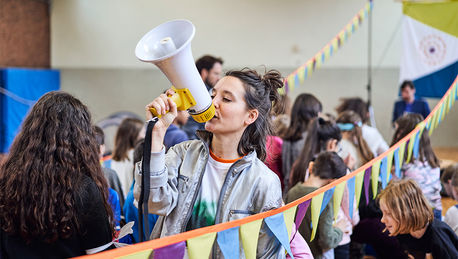Mit einem interaktiven mobilen Projekt betritt das JES Neuland: Nach Motiven eines Kinder-Sachbuches von Valerie Wyatt stürzen sich zwei Schauspieler*innen mit zwei Grundschulklassen in einer Turnhalle in ein gemeinsames demokratisches Abenteuer: Spielerisch und eingebettet in eine aufregende Geschichte erleben die Kinder das ermutigende Gefühl, dass sie ernstzunehmender Teil der Gesellschaft sind. Dass es sich lohnt, die eigene Stimme zu erheben – und um dieses Grundrecht zu kämpfen.